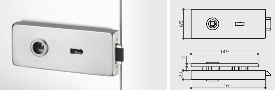 • Glastürschloss passend für Zargen mit 24 mm Falztiefe