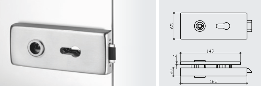 • Glastürschloss passend für Zargen mit 24 mm Falztiefe
