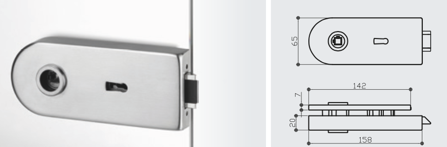 • Glastürschloss passend für Zargen mit 24 mm Falztiefe
