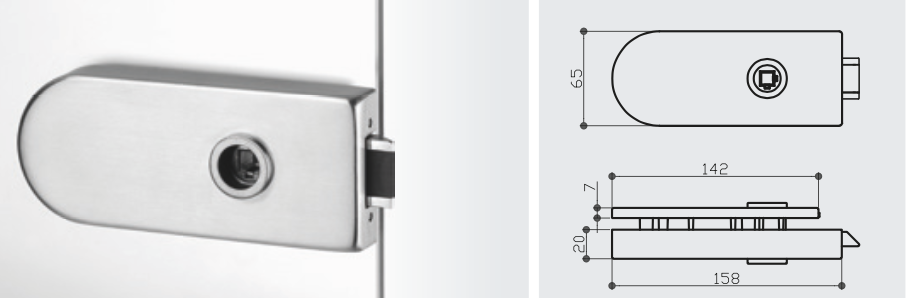 Glastür-Schloss rund ohne Lochung