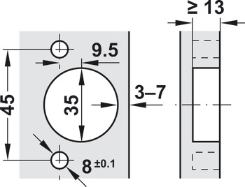 - Für aufliegende Türen / Mittelband (dies bedeutet, dass zwei Türen an einer Korpuswand angebracht sind.)