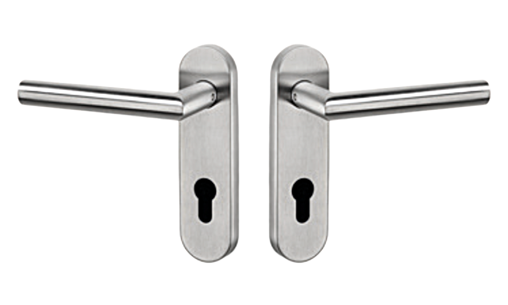 • Edelstahl-Rosetten + Kurzschildgarnituren (AISI 304)