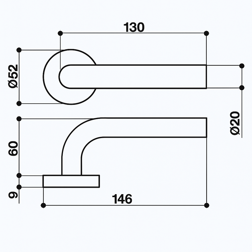 • Drücker fest drehbar gelagert inkl. Rückholfeder