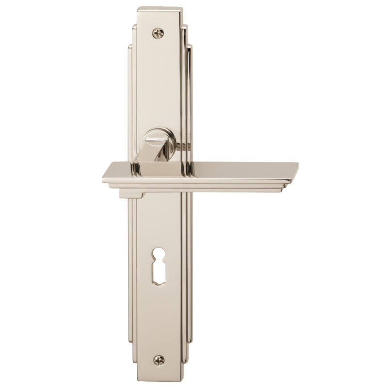 Langschild-Garnitur ART DECO Antwerpen Messing poliert vernickelt